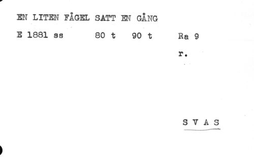 //// EN LITEN FÅGEL SATT EN GÅNG //// E 1881 ss 80 t 90 t Ra 9 //// r. //// * //// S V A S ////