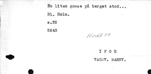 //// En liten gosse på berget stod... //// Dl. Holm. //// I' s. 32 //// 5243 //// I F G H //// VAGGV. BARNV. ////
