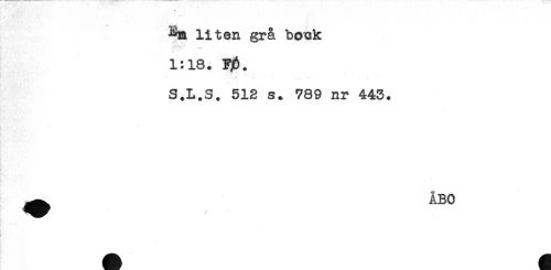 //// ' //// ^m liten grå bo^k //// 1:18. F^. //// * * . . **** * < //// S.L.S. 512 s. 789 nr 443. //// L - //// ^ ÅBO ////