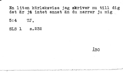 //// En liten kärleksvisa jag skriver nu till dig //// det är jl intet annat än du narrar ju mig //// 5:4 TJ. //// SLS 1 s.232 //// ÅBO ////