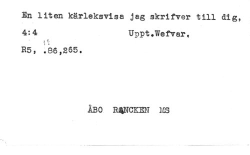 //// En liten kärleksvisa jag skrifver till dig, //// 4:4 Uppt.Wefvar. //// R5, .86,265. //// ÅBO RQNCKEN MS //// ^ " //// \ ////
