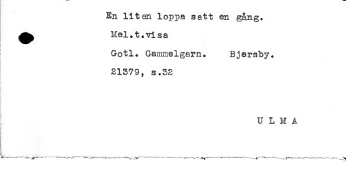//// En liten loppa satt en gång. //// ^^ Mel. t. vi sa //// [i //// Gotl. Gammelgarn. Bjersby. //// ; //// i, //// 21379, s.32 //// * //// ) //// t //// * //// U L M A ////
