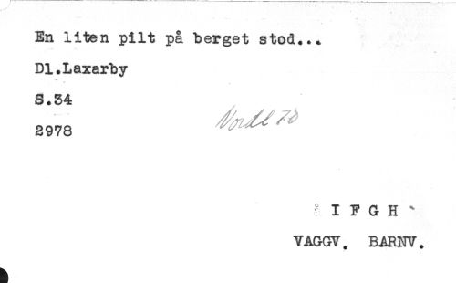 //// - - . y //// En liten pilt på berget stod... //// Dl.Laxarby //// * //// S.34 //// ? I F G H ^ //// VAGGV. BARNV. ////