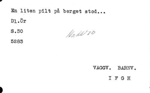 //// En liten pilt på berget stod... //// Di.Ör //// 5283 //// VAGGV. BARNV. //// I F G H ////