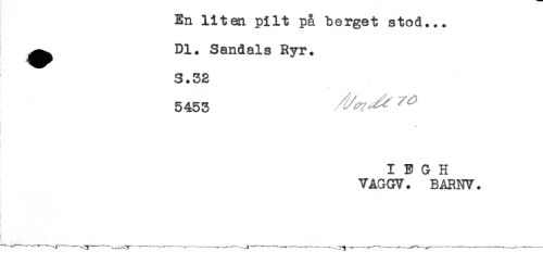 //// En liten pilt på berget stod... //// ^^ Dl. Sandals Ryr. //// S.32 //// 5453 ^^ //// * //// } //// I B G H //// VAGGV. BARNV. //// * ////