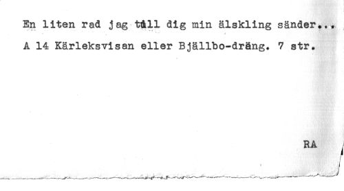 //// . '..^V.j--;'. - l //// En liten rad jag t&ll dig min älskling sänder... //// A 14 Kärleksvisan eller Bjällbo-dräng. 7 str. //// RA ^ //// ____-J ////