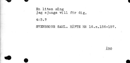 //// En liten sång //// jag sjunga vill för dig, //// 4:3.? //// SVENSSONS SAML. HÄFTE NR 16.s.156-157. //// ÅBO ////