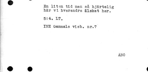 //// En liten tid men så hjärtelig //// här vi hvarandra älskat har. //// 5:4. LT. //// - //// INE Gammals visb. nr. 7 //// ' * //// ÅBO ////