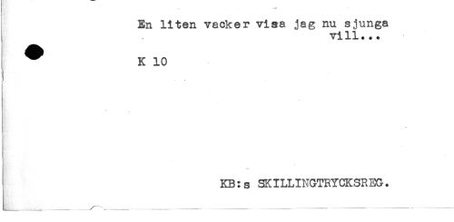 //// En liten vacker visa jag nu sjunga //// vill... //// ^ K 10 //// t //// KB:s SKILLINGTRYCKSREG. //// _____ ___ - ___ ___ - - - - - ----- ////