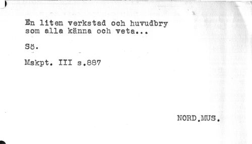 //// !** * -- -- * - - A //// En liten verkstad och huvudbry //// som alla känna och veta... //// Sö. //// Mskpt. III s.887 //// NORD.MUS. ////