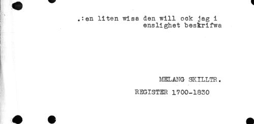 //// .:en liten wisa den will ock jag i //// enslighet beskrifwa //// MELANG SKILLTR. //// . - //// . ^ T //// REGISTER 1700-1830 //// H H t ^ ^ ////