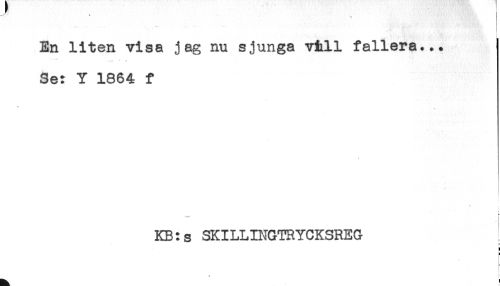 //// --- * //// En liten visa jag nu sjunga vMl fallera... //// Se: Y 1864 f //// KB:s SKILLINGTRYCKSREG //// ) //// i //// ! ////