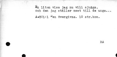 //// Rn liten visa jag nu vill sjunga, //// och den jag ställer mest till de unga... //// ** '*< .t-- "-' * " **"*' //// Å#30l:l ^en övergivna. 10 str.kom. //// ^ RA ////