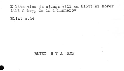 //// E lita visa ja sjunga vill om blott ni hörer //// till å kryp du in i hunneröv //// Blixt s.44 //// BLIXT SVA KOP ////