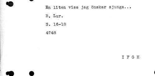//// ^^ En liten visa jag önskar sjunga... //// B. Lur. //// * ' //// t-- - //// S. 16-18 //// 4748 //// I F G H ////