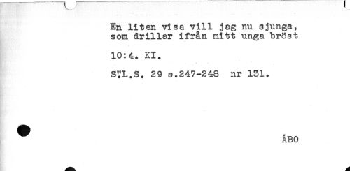 //// En liten visa vill jag nu sjunga, //// som drillar ifrån mitt unga bröst //// 10:4. Kl. //// STL.S. 29 s.247-248 nr 131. //// . //// - ////