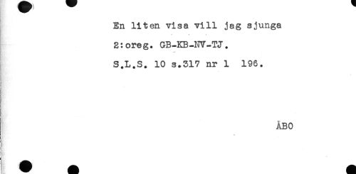 //// En liten visa vill jag sjunga //// f ^ ^ //// 2:oreg. GB-KB-NV-TJ. //// S.L.S. 10 s.S17 nr 1 196. //// . //// ÅBO //// # ////