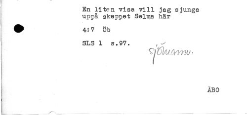 //// En liten visa vill jag sjunga //// uppå skeppet Selma här //// # 4:7 8b //// SLS 1 s. 97. ^^ ^ //// t - //// ; ÅBO //// - ////