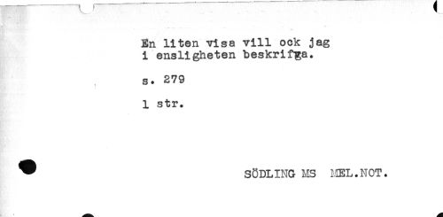 //// En liten visa vill ock jag //// i ensligheten beskrifga. //// s. 279 //// 1 str. ////