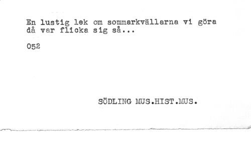 //// En lustig lek om sommarkvällarna vi göra //// då var flicka sig så... //// 052 //// SÖDLING MUS.HIST.MUS* ////