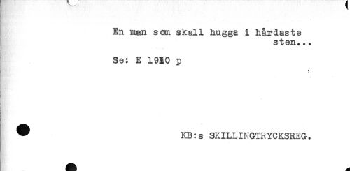 //// En man scm skall hugga i hårdaste //// sten... //// . //// Se: E 19&0 p //// * //// n,' //// ! //// ^ KB:s SKILLINGTRYCKSREG. ////
