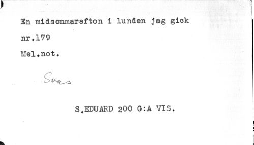 //// En midsommarafton i lunden jag gick //// nr.179 //// Mel.not. //// S.EDUARD 200 G:Å VIS. //// t //// ! ////