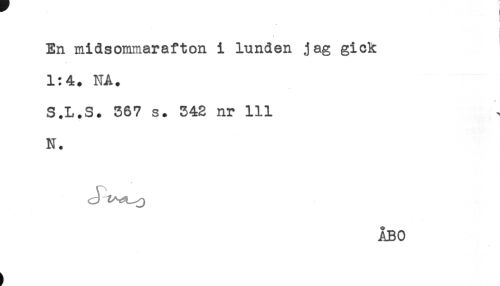 //// < //// En midsommarafton i lunden jag gick //// < //// 1:4. NA. //// S.L.S. 367 s. 342 nr 111 //// N. //// ÅBO ////