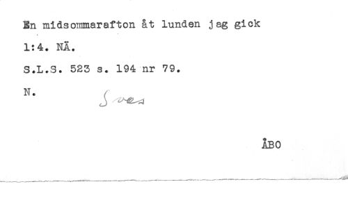 //// En midsommarafton åt lunden jag gick //// 1:4. NÄ. //// S.L.S. 523 s. 194 nr 79. //// N. , //// ÅBO ////