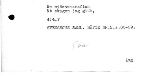 //// En midsommarafton //// åt skogen jag gick, //// ^ 4:4.? //// SVENSSONS SAML. HÄFTE NR.2.s.88-89. //// ÅBO ////