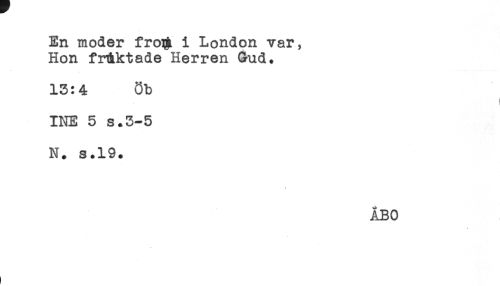 //// En moder froi# i London var, //// Hon friktade Herren Gud. //// 13:4 Öb //// i //// INE 5 s.3-5 //// N. s.19. //// < //// ÅBO ////