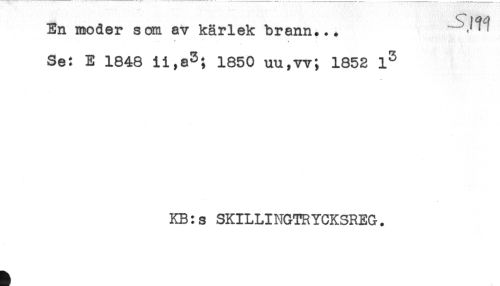 //// En moder som av kärlek brann... //// * * //// Se: E 1848 ii,a3; 1850 uu,vv; 1852 //// KB:s SKILLINGTRYCKSREG. ////