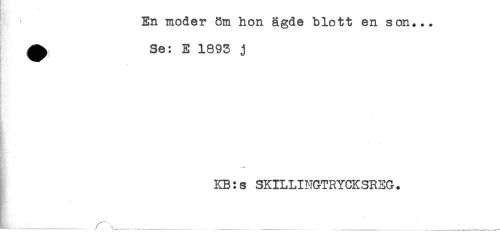 //// En moder öm hon ägde blott en son... //// ^ Se: E 1893 j //// - //// p //// B //// KB:s SKILLINGTRYCKSREG. ////