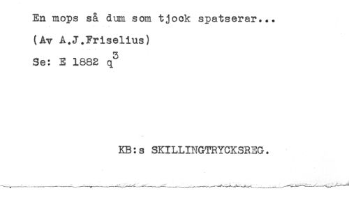//// En mops så dum som tjock spatserar... //// (Av A.J.Friselius) //// Se: E 1882 q^ //// KB:s SKILLINGTRYCKSREG. ////