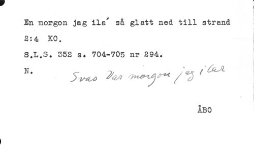 //// i //// ! //// En morgon jag ila" så glatt ned till strand //// << //// 2:4 KO. //// S.L.S. 352 s. 704-705 nr 294. //// < //// ABO ////