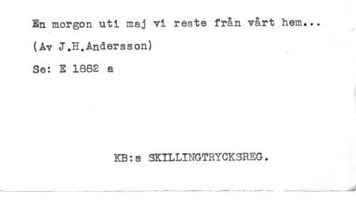 //// En morgon uti maj vi reste från vårt hem... //// (Av J.H.Andersson) //// Se: E 1882 a //// KB:s SKILLINGTRYCKSREG. ////