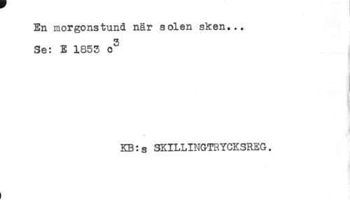 //// ) //// ! //// En morgonstund när solen sken... //// Se: E 1853 c" //// ; //// 3 //// jj //// KB:s SKILLINGTRYCKSREG. ////