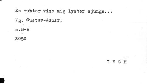 //// En muhter visa mig lyster sjunga... //// Yg. Gustav-Adolf. //// << //// s.e-9 //// 2086 //// I F G H ////