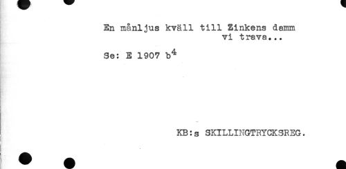 //// En månljus kväll till Zinkens damm //// vi trava... //// Se: E 1907 b^ //// < //// t //// KB:s SKILLINGTRYCKSREG. //// i ////