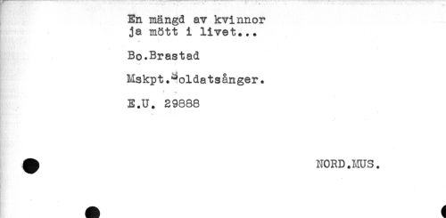 //// En mängd av kvinnor //// ja mött i livet... //// Bo.Brastad //// Mskpt.^oldatsånger. //// f i //// E.U. 29888 //// '.S--.- t //// ^ NORD.MUS. ////