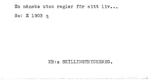 //// En mänska utan regler för sitt liv... //// Se: E 1903 q //// KB:s SKILLINGTRYCKSREG. ////