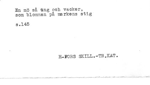 //// En mö så nng och vacker, //// som blomman på markens stig //// s.145 //// * ' //// * //// H-FORS SKILL.-TR.KAT. ////