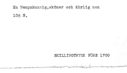 //// En Nampnkunnig,sköner och ährlig man //// 108 S. //// ^ < ^ //// SKILLINGTRYCK FÖRE 1700 ////