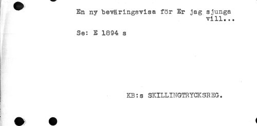 //// En ny beväringsvisa fOr Er jag sjunga //// vill... //// Se: E 1894 s //// KB:s SKILLINGTRYCKSREG. ////