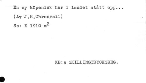 //// En ny köpenick har i landet stått opp... //// (Av J.H.Chronvall) //// Se: E 1910 m^ //// * //// KB:s SKILLINGTRYCKSREG. ////