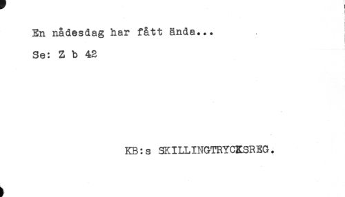 //// En nådesdag har fått ända... //// Se: Z b 4=2 //// KB:s SKILLINGTRYCKSREG. ////
