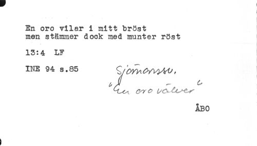 //// j //// En oro vilar i mitt bröst i //// men stämmer dock med munter röst i //// * //// 15:4 LF //// i //// INE 94 3.85 //// ÅBO ////