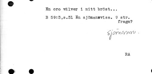 //// En oro välver i mitt bröst... //// B 59:3,s.31 En sjömanzvisa. 9 str. //// fragm? //// i //// RA ////