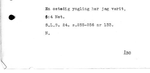 //// En ostadig yngling har jag varit, //// * //// ^ 6:4 Net. //// } ' //// S.L.S. 24. s.255-256 nr 135. //// N. //// ÅBO ////