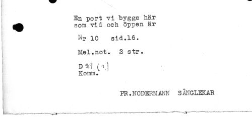 //// ! //// T //// . ' * //// En port vi bygga här //// som vid och öppen är //// Nr 10 sid.16. //// Mel.not. 2 str. //// Komm* //// t //// PR. NODERM ANN' S ÅNGLEKAR ////