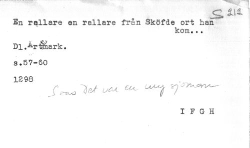 //// En rallare en rallare från Sköfde ort han^ //// kom... //// < //// Dl.^-r^ark. //// s.57-60 //// 1298 //// I F G H //// r //// ] //// i //// i //// i ////